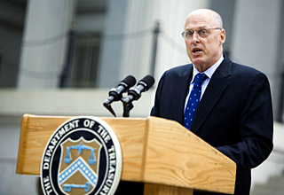 | 13日,在美國華盛頓,美國財政部長亨利·保爾森向媒體發(fā)表聲明,美國財政部和聯(lián)邦儲備委員會宣布出手救助陷于資金困境的美國最大兩家住房抵押貸款融資機構(gòu)——房利美和房地美。新華社/路透 | 美國財政部長亨利·保爾森20日連趕兩場電視訪談節(jié)目,談?wù)撁绹?jīng)濟發(fā)展前景、金融市場現(xiàn)狀和近來陷入麻煩的住房抵押貸款融資機構(gòu)房利美和房地美。 保爾森在訪談中說,美國經(jīng)濟的“艱難時光”仍將持續(xù)數(shù)月。