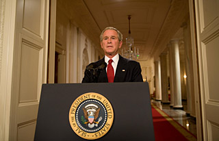 | 圖為24日,美國總統布什在華盛頓白宮發(fā)表電視講話后接受媒體拍照。新華社/法新 | 美國總統布什24日發(fā)表全國電視講話時,運用強烈的措辭敦促國會盡快通過政府提出的巨額金融救援計劃,他直言“我們的整體經濟正處于危機之中”。 布什當天的電視講話除了向美國公眾解釋這一上世紀30年代美國經濟大蕭條以來最大的救市方案外,更重要的是向國會施壓,敦促其盡快出臺各方達成共識的最終方案。 布什指出,這一計劃有助于政府購入金融機構不良資產,從而增加信貸市場流動性,進而刺激經濟復蘇。他強調,該計劃旨在幫助整個國家,而不是單個公司。 在布什發(fā)表電視講話之前,美國兩黨總統候選人奧巴馬和麥凱恩則發(fā)表聯合聲明,警告美國民眾正面臨經濟危機時刻。他們強調,目前正是兩黨本著合作精神,以民眾利益為先,齊心協力共渡難關之時。 美國聯邦儲備委員會主席伯南克當天在國會聯合經濟委員會作證時警告,如果政府的金融救援計劃不能得以實施,信貸危機會進一步加劇,企業(yè)和消費者都將無法獲得貸款,這將導致美國經濟陷入停頓,其經濟后果將是可怕的。他強調,美國經濟活動看起來已普遍減緩,經濟增長前景的下行風險非常令人關注。他說,對外貿易在今年上半年為美國經濟增長提供了相當多的支持,但在未來幾個季度里,美國的出口對于經濟增長的推動作用可能不會像上半年那樣大。同時,石油以及其他商品價格最近有所回落以及經濟增長步伐放慢,將使通貨膨脹壓力在今年晚些時候以及明年得到緩解。 根據著名政治期貨公司Intrade提供的最新交易結果,投資者認為美國國會最終通過大規(guī)模金融救援計劃的幾率達到80%。 政治期貨是與華爾街的期貨市場有著類似運作原理的市場,往往能反映出一個事件發(fā)展的走勢或者未來發(fā)展的結果。由于民眾是通過投入資金來參與交易,因而政治期貨被認為比普通民調更能反映人們對事件的認知和判斷。 據路透社24日報道,Intrade公司指出,當天市場交易相當活躍,而有關美國政府巨額金融救援計劃的交易是最受關注的。此外,民眾參與最多交易的還包括美國共和黨副總統候選人佩林是否被換掉。 美國財政部發(fā)言人布魯克利·麥克勞克林則表示:“我們很有信心在本周通過! |