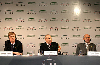 攝 | 二十國(guó)集團(tuán)財(cái)政部長(zhǎng)和中央銀行行長(zhǎng)(G20)2008年年會(huì)9日在巴西圣保羅閉幕,與會(huì)代表一致認(rèn)為有必要改革目前的國(guó)際金融體系,采取共同行動(dòng)應(yīng)對(duì)全球金融危機(jī)。