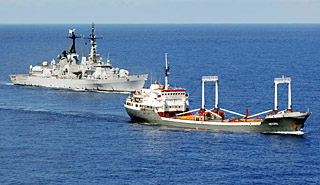 海盜活動頻繁已迫使國際社會在亞丁灣附近海域加強(qiáng)巡邏。印度海軍19日說,在附近海域巡邏的“塔巴”號護(hù)衛(wèi)艦18日擊毀一艘類似“母船”的海盜船。 “塔巴”號當(dāng)天巡邏時發(fā)現(xiàn)這艘海盜船,隨后要求停船檢查。這艘海盜船尾部拖著兩艘快艇,船上載有食物、柴油和水,看起來類似一艘“母船”。 海軍官員說,海盜在輪船甲板上威脅用火箭筒襲擊軍艦,隨后便向軍艦開槍射擊!八汀碧栍枰曰?fù)簦l(fā)爆炸和大火。海盜“母船”在爆炸中被毀。 |