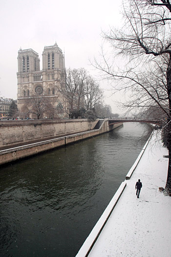 5日,在法國首都巴黎,一名男子在積雪覆蓋著的塞納河岸邊行走。當(dāng)天,歐洲多個(gè)國家普降大雪。新華社/法新