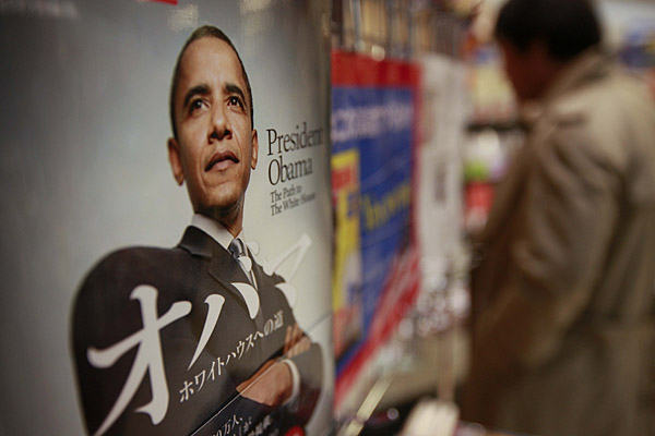 22日,在日本最大的圖書集散地——東京神田書店街,一位讀者在選購(gòu)美國(guó)新任總統(tǒng)奧巴馬的相關(guān)圖書。自奧巴馬當(dāng)選美國(guó)總統(tǒng)以來,其傳奇經(jīng)歷在日本圖書界刮起了一陣旋風(fēng),各大書店不約而同地購(gòu)進(jìn)與其相關(guān)的圖書,銷售一路看漲。