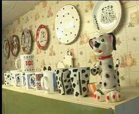受到多迪·史密斯的小說《101斑點(diǎn)狗》及其相關(guān)電影和動畫片的影響,英國人卡倫·費(fèi)里爾成為斑點(diǎn)狗極其相關(guān)產(chǎn)品的狂熱愛好者。現(xiàn)在,她已經(jīng)是全英國有關(guān)“斑點(diǎn)狗”收藏品數(shù)量最多、種類最全的人。 更為有意思的是,自從卡倫·費(fèi)里爾在1991年買了一條名叫迪托的斑點(diǎn)狗后,她喜愛的范圍就不再局限于斑點(diǎn)狗了,所有和斑點(diǎn)有關(guān)的物品都是她收藏的對象。 現(xiàn)在,卡倫·費(fèi)里爾決定將她收集的這些與斑點(diǎn)有關(guān)的物品全部賣掉,目的是希望能夠和與她有相同愛好的人共同分享這些藏品。 一座位于南安普敦的普通房屋是卡倫·費(fèi)里爾收藏斑點(diǎn)狗的樂園。門口有一輛斑點(diǎn)汽車,走進(jìn)屋內(nèi),人們仿佛置身于斑點(diǎn)的世界。這里共有大約5000多件和斑點(diǎn)有關(guān)的收藏品,包括斑點(diǎn)臺燈、斑點(diǎn)氣球、斑點(diǎn)冰鞋、斑點(diǎn)餐具等。 44歲的卡倫·費(fèi)里爾花了17年的時間收集到這些藏品,其中既有上世紀(jì)50年代的原裝玩具,也有電影《101斑點(diǎn)狗》的配套產(chǎn)品?▊惖恼煞蚯兴箤τ谄拮拥膼酆靡彩掷斫。 在拍賣藏品的消息傳出后,很多和卡倫·費(fèi)里爾有相同愛好的人都趕來,希望能夠分享這些收藏品?▊悺べM(fèi)里爾表示,她的每一件藏品都包含著一段美好的故事,她非常希望購買收藏品的人能把這些故事一起帶回家。