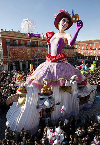 15日,在法國尼斯,女王花車參加第125屆嘉年華游行活動。當(dāng)日,尼斯舉行盛大的嘉年華,各式各樣的花車加入到歡慶游行中。新華社/路透