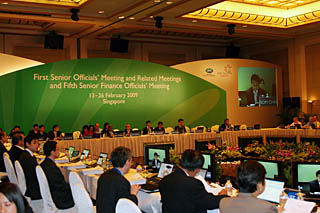 | 圖為16日,2009年亞太經(jīng)濟合作組織第一次高級官員會議現(xiàn)場。本報記者