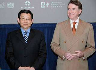 | 2月27日,在英國首都倫敦,中國商務(wù)部長陳德銘(左)與英國商業(yè)、企業(yè)和制度改革大臣曼德爾森一起出席中英企業(yè)項(xiàng)目協(xié)議簽字儀式。新華社記者