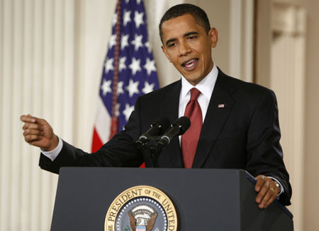 24日,美國(guó)總統(tǒng)奧巴馬在白宮舉行第二次黃金時(shí)間記者會(huì)。奧巴馬當(dāng)晚說,美國(guó)政府正在“全面出擊”應(yīng)對(duì)經(jīng)濟(jì)危機(jī),并已看到取得進(jìn)展的跡象。新華社/路透 | 美國(guó)總統(tǒng)奧巴馬24日表示,他反對(duì)以其他貨幣取代美元的全球儲(chǔ)備貨幣地位。美國(guó)財(cái)長(zhǎng)蓋特納和美聯(lián)儲(chǔ)主席伯南克同時(shí)在國(guó)會(huì)聽證會(huì)上表達(dá)了類似觀點(diǎn)。 24日當(dāng)晚,奧巴馬自上任以來第二次在黃金時(shí)段舉行新聞發(fā)布會(huì)。奧巴馬表示,他認(rèn)為不需要(新的)全球儲(chǔ)備貨幣,還強(qiáng)調(diào)說美元依舊“極其堅(jiān)挺”。他說,美元表現(xiàn)強(qiáng)勁,反映出投資者仍視美國(guó)為世界經(jīng)濟(jì)最強(qiáng)國(guó)和政治體制最穩(wěn)定的國(guó)家,“我相信,各界對(duì)我們最終闖過難關(guān)和經(jīng)濟(jì)繁榮前景有信心”。 奧巴馬還概述了美國(guó)政府到目前為止為解決危機(jī)所采取的重要步驟。他說,政府的戰(zhàn)略是創(chuàng)造就業(yè),幫助負(fù)責(zé)任的購(gòu)房者,重新啟動(dòng)信貸市場(chǎng),支持經(jīng)濟(jì)長(zhǎng)期增長(zhǎng)。奧巴馬對(duì)通過實(shí)施政府戰(zhàn)略戰(zhàn)勝危機(jī)表示樂觀。但他強(qiáng)調(diào),危機(jī)不是一夜之間形成的,解決危機(jī)也需要時(shí)間。他請(qǐng)求國(guó)民給予政府更多的耐心和理解,來戰(zhàn)勝這場(chǎng)幾十年來最嚴(yán)重的經(jīng)濟(jì)危機(jī)。 另?yè)?jù)路透社報(bào)道,在24日的美國(guó)國(guó)會(huì)聽證會(huì)上,財(cái)長(zhǎng)蓋特納和美聯(lián)儲(chǔ)主席伯南克也為美元進(jìn)行辯護(hù)。報(bào)道稱,美國(guó)明尼蘇達(dá)州共和黨議員巴克曼曾向蓋特納發(fā)問,面對(duì)放棄美元而采用一種全球儲(chǔ)備貨幣這樣的建議,“你是否會(huì)無條件地加以拒絕”?蓋特納回答說,他會(huì)這樣做。同樣的問題擺在伯南克面前,他的回答與蓋特納如出一轍。 俄羅斯方面上周曾說,俄方計(jì)劃在下月初召開的二十國(guó)集團(tuán)領(lǐng)導(dǎo)人會(huì)議上提議,創(chuàng)立一種新的全球儲(chǔ)備貨幣。俄方稱,這一設(shè)想已獲得巴西、印度、南非等新興經(jīng)濟(jì)體支持。此外,中國(guó)人民銀行行長(zhǎng)周小川日前撰文指出,金融危機(jī)警示我們必須創(chuàng)造性地改革和完善現(xiàn)行國(guó)際貨幣體系,推動(dòng)國(guó)際儲(chǔ)備貨幣向著幣值穩(wěn)定、供應(yīng)有序、總量可調(diào)的方向完善,才能從根本上維護(hù)全球經(jīng)濟(jì)金融穩(wěn)定。