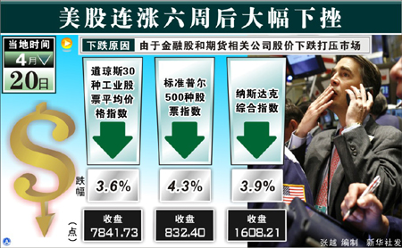 受銀行股大跌拖累,美國股市在連漲六周之后出現(xiàn)回調(diào),20日紐約股市三大股指的跌幅均超過3.5%,并拖累全球股市下挫。美國股市如此大幅度的下跌究竟是股市的暫時修正,還是將進(jìn)入下一輪的下跌?