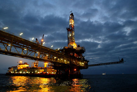 這是安哥拉海岸外石油鉆井平臺(tái)的夜景。新華社/法新 |