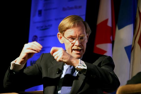 8日,在加拿大蒙特利爾,世界銀行行長(zhǎng)佐利克在第15屆美洲國(guó)際經(jīng)濟(jì)論壇的午餐會(huì)上發(fā)表講話(huà)。新華社記者楊士龍攝 |