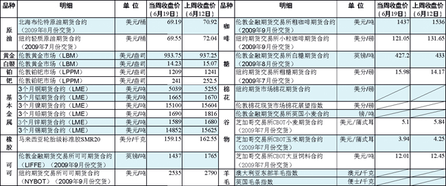 國(guó)際大宗商品期貨價(jià)格明細(xì)表