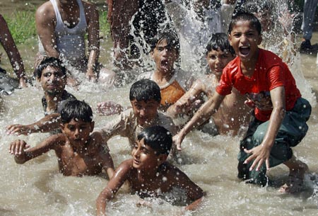 巴基斯坦拉合爾:高溫天氣戲水納涼