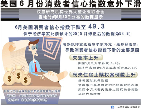 美國6月份消費(fèi)信心指數(shù)意外下滑