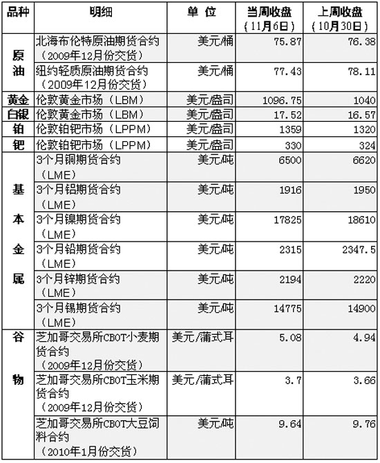 國際大宗商品期貨價格明細表[圖]