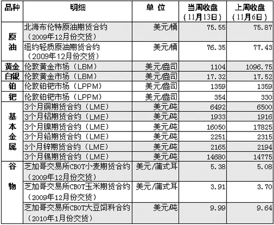 當(dāng)周國際金價(jià)再次刷新歷史紀(jì)錄。倫敦市場金價(jià)12日創(chuàng)下每盎司1123.38美元的歷史新高。紐約市場黃金期貨12月合約11日盤中觸及1119.10美元的歷史新高,并在次日隔夜電子交易中一度上漲至1123.40美元的紀(jì)錄新高。 分析人士指出,美國經(jīng)濟(jì)低迷造成美元疲軟,衡量美元對西方主要貨幣比價(jià)的美元指數(shù)在11日夜間曾一度跌至74.855的15個(gè)月來新低,美元匯率下跌提升了投資者買入黃金保值的需求,因此金價(jià)連創(chuàng)新高。只要美聯(lián)儲加息未進(jìn)入倒計(jì)時(shí),黃金有理由在利好基本面的支撐下繼續(xù)維持高位,并仍有上行機(jī)會。但需要注意的是,鑒于近期金價(jià)上漲主要由大量投機(jī)買盤而非實(shí)物需求推動(dòng),因此金價(jià)有可能出現(xiàn)短期回調(diào)。 受美元匯率波動(dòng)以及投資者對美國能源需求恢復(fù)前景表示擔(dān)憂等因素影響,當(dāng)周國際油價(jià)呈震蕩走勢。分析人士認(rèn)為,目前紐約市場油價(jià)處于每桶76美元至82美元震蕩區(qū)間的下部,不排除向下突破的可能。?松梨谑凸臼紫瘓(zhí)行官13日也指出,當(dāng)前油價(jià)中至少有20美元至25美元的溢價(jià)是由美元貶值造成。 庫存減少推高了鋁價(jià),雖然倫敦金屬交易所(LME)的鋁庫存仍處于高位,但已比頂峰時(shí)下降了近10萬噸,反映出市場對鋁的需求增多。LME其他基本金屬期貨價(jià)格普遍下跌,其中鎳價(jià)跌幅最深,LME鎳庫存12日升至13.17萬噸,為1995年以來最高。 埃及國家小麥采購機(jī)構(gòu)——埃及通用商品供應(yīng)總局12日買入了29.5萬噸俄羅斯小麥。在基本面利空的情況下,芝加哥市場小麥價(jià)格依然上漲,上漲動(dòng)力來源于技術(shù)性基金買盤。另外,美國農(nóng)業(yè)部公布的農(nóng)作物生長進(jìn)度和農(nóng)產(chǎn)品月度供需報(bào)告等,都為玉米價(jià)格走高提供了支撐。