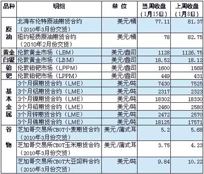 受美國等主要能源消費國天氣轉(zhuǎn)暖、美國原油庫存增加和經(jīng)濟數(shù)據(jù)不佳等因素的影響,投資者看淡能源需求前景,當周國際油價連續(xù)5個交易日回落,并跌破每桶80美元。 美國能源部13日公布的庫存報告顯示,截至上周美國商業(yè)原油庫存增加了370萬桶,遠高于此前市場預期的100萬桶。汽油庫存增加了380萬桶,包括取暖油在內(nèi)的成品油庫存增加了140萬桶。 美國商務(wù)部14日公布的數(shù)據(jù)顯示,12月零售業(yè)銷售比前一個月下滑0.3%,而此前市場曾普遍預計該數(shù)據(jù)將上行;同時,2009年全年美國零售業(yè)銷售額減少了6.2%,創(chuàng)下1992年以來最大的年度降幅,甚至超過了金融危機爆發(fā)的2008年。 投資性需求推動黃金價格微幅上漲。德意志銀行的分析認為,隨著2010年美聯(lián)儲收緊貨幣政策,美元預計將會溫和反彈,這將導致黃金在上半年的投資性需求減弱,不過從中期來看,美元仍將繼續(xù)下跌,國際金價預計將在2011年由于通脹的對沖需求而再創(chuàng)新高。 在中國需求旺盛等因素的推動下,倫敦市場鉑價一度觸及2008年8月以來的最高點——每盎司1627.38美元,鈀價觸及2008年7月以來最高點——每盎司454美元。 中國人民銀行決定從18日起上調(diào)存款類金融機構(gòu)人民幣存款準備金率0.5個百分點,這被認為是中國央行收緊寬松貨幣政策的前奏。受此影響,倫敦金屬交易所除錫外的其他基本金屬價格普遍下跌。受強勁需求的支撐,錫價升至2008年9月中旬以來的最高點——每噸18500美元。 不過,巴克萊資本公司認為,盡管存在一定的通脹風險,但仍對中國的經(jīng)濟前景保持樂觀,中國仍將保持對金屬旺盛的需求。 供給增加而需求下降的基本面利空成為打壓當周芝加哥農(nóng)產(chǎn)品期貨價格走勢的主要原因。美國農(nóng)業(yè)部公布的報告將美國玉米2009/10年度的產(chǎn)量上調(diào)至創(chuàng)紀錄的131.51億蒲式耳,美國大豆2009/10年度的產(chǎn)量預估上調(diào)至創(chuàng)紀錄的33.61億蒲式耳,而出口銷售皆低于市場預估區(qū)間的下限值。 美國農(nóng)業(yè)部14日公布的周度農(nóng)產(chǎn)品出口銷售報告顯示,截至1月7日前一周,美國共出口銷售玉米32.73萬噸,不僅低于市場預估區(qū)間的下限值,也創(chuàng)下了近3個月來的最低值,出口銷售小麥18.19萬噸,也低于市場預估區(qū)間的下限值。