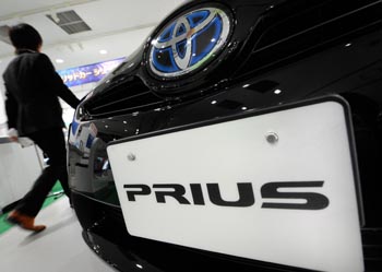 在日本首都東京,一名男子從一輛豐田普銳斯混合動(dòng)力車旁走過。新華社/法新 |