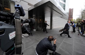 4月16日,在美國紐約曼哈頓,記者在高盛集團(tuán)總部外采訪。當(dāng)日,美國證券交易委員會向紐約曼哈頓聯(lián)邦法院提起民事訴訟,指控高盛集團(tuán)在涉及次級抵押貸款業(yè)務(wù)金融產(chǎn)品問題上涉嫌欺詐投資者。新華社記者