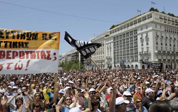 希臘兩大工會5月20日再次發(fā)起大罷工,這是今年希臘的第四次全國大罷工。繼續(xù)抗議政府增稅、削減工資和退休金的緊縮政策。希臘的危機(jī)并沒有過去。新華社發(fā) |