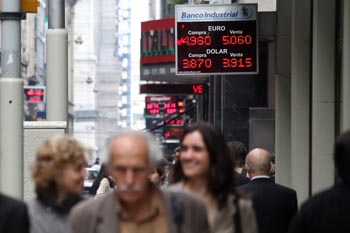 阿根廷首都布宜諾斯艾利斯,人們從市中心一家貨幣兌換機構門前走過,歐洲債務危機影響南美金融市場。新華社發(fā) |