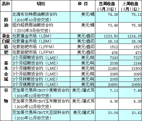 國(guó)際大宗商品期貨價(jià)格明細(xì)表