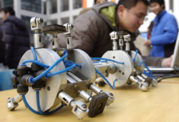 1月5日,一名學生通過電腦演示他和同學設計的“氣動機器人”。當日,南京東南大學舉行本科生科技創(chuàng)新成果展示會,共展出250多項科技創(chuàng)新成果。近年,東南大學推出“大學生科研訓練計劃”,學校設立專項基金,制定創(chuàng)新學分認定等政策鼓勵學生創(chuàng)新,從2004年至今,全校本科生從事的各類科技創(chuàng)新項目約達3000項。(本報資料照片)