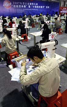 圖為2007年晉江市制鞋珩業(yè)“技能團體賽”競賽現(xiàn)場。本報記者 康淼 攝