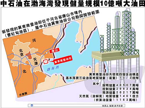 中石油冀東油田公司副總經(jīng)理常學(xué)軍介紹說,這個大油田具有“兩大三高四好”的特點,“兩大”就是儲量大,10億噸的儲量是相當(dāng)驚人的;油層厚度大,平均單井鉆遇油層厚度可達80米至100米;“三高”就是單井產(chǎn)量高,平均在100噸至500噸;儲量豐度高,平均每平方公里達500萬噸;落實程度高,單口井落實采控程度在2平方公里;“四好”就是油層物性好,孔隙度在25%至32%,滲透率為300至1500毫達西;油品品質(zhì)好,密度每立方厘米為0.82至0.84,是典型的輕質(zhì)油,粘度也是最佳比例;試采效果好,單井日穩(wěn)定產(chǎn)量為100噸至500噸;勘探效益好,整個油田發(fā)現(xiàn)成本較低。