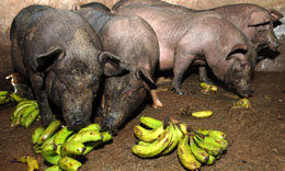 6月12日,瓊海市塔洋鎮(zhèn)農(nóng)民用香蕉喂豬。海南香蕉由于受到各種因素影響,近期價格持續(xù)低迷,讓蕉農(nóng)一籌莫展。本報記者:趙穎全