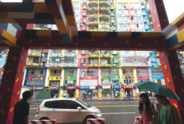重慶涂鴉藝術(shù)一條街于今年6月初正式亮相。圖為幾位市民正從街頭經(jīng)過。周衡義