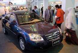 在埃及開羅國(guó)際展覽中心舉辦的2007泛阿拉伯及非洲地區(qū)國(guó)際車展,德國(guó)大眾、日本豐田、法國(guó)標(biāo)致和中國(guó)奇瑞、比亞迪等30多家汽車廠商的50多款車型和一些零部件在此展出。本次車展上中國(guó)五個(gè)品牌共10多個(gè)型號(hào)的汽車參展,受到埃及觀眾的青睞。新華社記者:藺以光