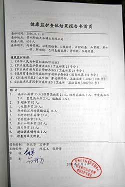 | 300多名職工體檢異常,公司負責人卻說職業(yè)衛(wèi)生安全“沒問題”。本報記者 劉文國