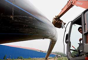 | 無(wú)錫鋪設(shè)治污管為太湖截污。新華社發(fā) 程炳洪