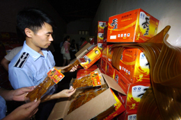 湖南省質(zhì)監(jiān)局執(zhí)法人員在長(zhǎng)沙查封一處劣質(zhì)食品生產(chǎn)窩點(diǎn)。當(dāng)日上午,湖南省政府在省會(huì)長(zhǎng)沙市正式啟動(dòng)全省產(chǎn)品質(zhì)量與食品安全專項(xiàng)整治行動(dòng)。據(jù)悉,本次專項(xiàng)整治行動(dòng)為期半年,500余名執(zhí)法人員兵分三路,在該省范圍內(nèi)將對(duì)食品、特種設(shè)備、煙花爆竹安全開展專項(xiàng)整治行動(dòng)。 |
