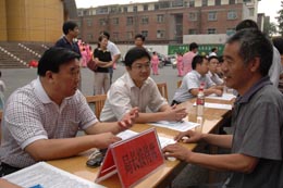 就業(yè)乃民生之本。王保明把解決城鎮(zhèn)新增就業(yè)再就業(yè)的任務(wù)從每年8萬(wàn)人提高到10萬(wàn)、12萬(wàn)。2004年以來(lái),鄭州市實(shí)現(xiàn)就業(yè)再就業(yè)達(dá)45萬(wàn)余人,安置下崗失業(yè)人員17.55萬(wàn)人,“4050“人員5萬(wàn)多人,大力開(kāi)發(fā)公益性崗位,對(duì)“零就業(yè)家庭”和困難群體進(jìn)行就業(yè)援助,先后使2.74萬(wàn)人走上就業(yè)崗位,城鎮(zhèn)失業(yè)率始終控制在3%以?xún)?nèi)。 小額擔(dān)保貸款作為國(guó)家啟動(dòng)下崗失業(yè)人員就業(yè)援助項(xiàng)目,需要黨政機(jī)關(guān)工作人員做反擔(dān)保人。起初很多下崗職工在申請(qǐng)這項(xiàng)貸款時(shí),都找不到人員簽名擔(dān)保。王保明得知這一情況后,立即召開(kāi)全局干部職工大會(huì),他帶頭簽名,做下崗職工小額擔(dān)保貸款的反擔(dān)保人。在他的帶領(lǐng)下,鄭州市近萬(wàn)名下崗職工順利找到了由政府工作人員出面的反擔(dān)保人。3年來(lái),全市共完成小額擔(dān)保貸款1.8億元,使5000多名下崗職工和上千家中小企業(yè)獲得二次創(chuàng)業(yè)啟動(dòng)資金,為他們重新?lián)P起了創(chuàng)業(yè)的風(fēng)帆。 2004年3月,鄭東新區(qū)一期工程拆遷涉及兩個(gè)區(qū)4個(gè)鄉(xiāng)鎮(zhèn)23個(gè)行政村近8萬(wàn)農(nóng)民。土地被征用,8萬(wàn)余農(nóng)民突然“失業(yè)”。他們紛紛到鄉(xiāng)、區(qū)、市政府上訪。 王保明在勞動(dòng)保障局系統(tǒng)抽調(diào)300名干部,分成17個(gè)小組,走村入戶搞調(diào)查,摸清被征地農(nóng)民基本情況;在全市各行各業(yè)下達(dá)騰崗指標(biāo),幾天內(nèi)騰崗兩萬(wàn)個(gè);市屬技工學(xué)校和民營(yíng)培訓(xùn)機(jī)構(gòu)大開(kāi)方便之門(mén),被征地農(nóng)民上技校學(xué)費(fèi)可以減免……60天過(guò)去了,各項(xiàng)促進(jìn)就業(yè)的措施一一到位。鄭東新區(qū)被征地農(nóng)民男60歲、女55歲以上按月領(lǐng)取生活保障金,每戶最少有一人實(shí)現(xiàn)就業(yè)。