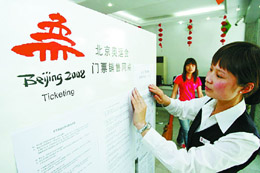 北京奧組委票務(wù)中心提示,應(yīng)通過(guò)官方途徑購(gòu)買奧運(yùn)門票。(本報(bào)資料照片) | 9月12日,北京奧組委委托中國(guó)銀行開始對(duì)第一階段成功預(yù)訂奧運(yùn)門票的購(gòu)票人進(jìn)行集中扣款。集中扣款還未結(jié)束,網(wǎng)上卻出現(xiàn)了高價(jià)轉(zhuǎn)讓奧運(yùn)會(huì)門票的信息,一張?jiān)瓋r(jià)3000元的開幕式門票竟然標(biāo)價(jià)5萬(wàn)元! 第二階段預(yù)售結(jié)束后,門票高價(jià)轉(zhuǎn)讓是否還會(huì)重演?北京奧組委法律專家接受記者采訪時(shí)表示,高價(jià)轉(zhuǎn)讓奧運(yùn)門票屬違法行為,轉(zhuǎn)讓細(xì)則目前正在制定中。