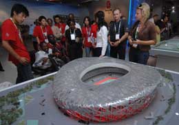 “鳥(niǎo)巢”的鋼結(jié)構(gòu)在世界上獨(dú)一無(wú)二。整個(gè)工程沒(méi)有使用一公斤外國(guó)鋼鐵,是地地道道的“中國(guó)造”。 。ū緢(bào)資料照片) | 隨著2008年奧運(yùn)會(huì)開(kāi)幕日益臨近,奧運(yùn)場(chǎng)館逐步竣工,全世界越來(lái)越多的目光投向了東方的奧運(yùn)之城——北京。在這座有著兩千多年建城史、八百多年建都史的古城中,次第崛起的眾多造型別致、匠心獨(dú)具的奧運(yùn)建筑,無(wú)不閃現(xiàn)出東方智慧中蘊(yùn)藏的創(chuàng)新之魂。