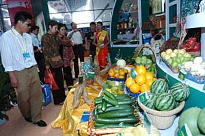 | 第四屆中國-東盟博覽會上,參會人員在關(guān)注中國的農(nóng)產(chǎn)品。新華社記者 劉廣銘