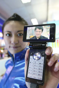2007中國國際通信設備技術展覽會上,工作人員展示一種可接收、存儲電視節(jié)目的手機。新華社發(fā)(陳曉根
