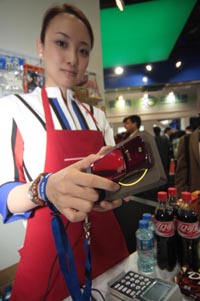 2007中國國際通信設備技術展覽會上,工作人員展示“刷手機消費系統(tǒng)”。顧客只要用裝有特殊芯片的手機在該系統(tǒng)上刷一下,就可完成購物支付過程。新華社發(fā) | 為期四天的2007中國國際通信設備技術展覽會日前在北京落下帷幕。作為今年亞洲規(guī)模最大的信息通信展,它已經(jīng)成為運營商、技術和設備供應商、系統(tǒng)集成商、終端制造商、互聯(lián)網(wǎng)服務及內(nèi)容提供商、媒體、分銷商和廣大消費者等共同分享的通信大餐,而展會中展出的一大批獨具看點的通信產(chǎn)品也成為本次展會的視覺盛宴。