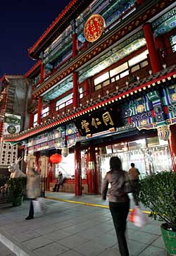| 北京大柵欄商業(yè)街上的同仁堂藥店。新華社記者 劉欣