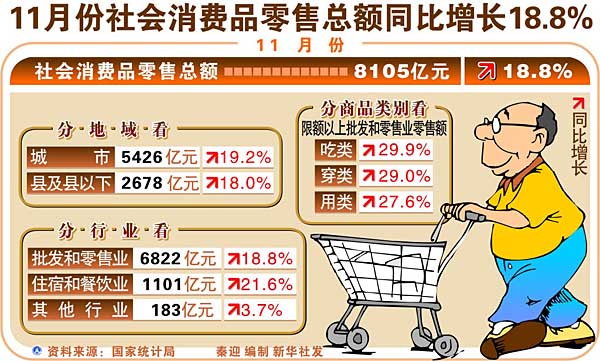11月份社會消費品零售總額同比增長18.8%