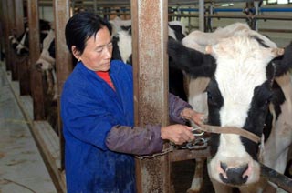 | 陜西省涇陽縣興隆鎮(zhèn)許莊村奶農(nóng)正將奶牛入圈。本報記者 陳鋼