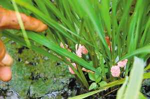 危害水稻生長(zhǎng)的福壽螺。本報(bào)資料照片 | 外來(lái)生物入侵引起高度重視