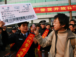 隨著春運來臨,西安鐵路警方發(fā)動社會力量,從學(xué)生、民工、探親旅客中招募志愿者,邀請他們協(xié)助警方打擊“票販子”活動。目前已招募了30名大學(xué)生志愿者。[詳情]