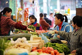 | 3月11日,市民在合肥一家菜市場(chǎng)購(gòu)買蔬菜。新華社記者 陳曄華