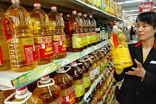 | 寧夏加大食用油儲(chǔ)備,提高應(yīng)急處置能力。3月9日,銀川新華百貨連鎖超市員工正在擺放食用油。新華社記者 李紫恒