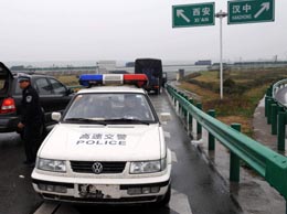 3月12日,一輛“高速交警”執(zhí)法車停在西(安)漢(中)高速公路龍亭段正檢查來(lái)往車輛。該車不僅沒(méi)有車牌,還停在高速路的逆行交叉道上,給執(zhí)法者和來(lái)往車輛造成嚴(yán)重的安全隱患。新華社記者:陶明