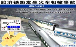 28日凌晨4時48分,北京至青島的T195次下行到膠濟線周村至王村區(qū)間時,客車尾部第9節(jié)至第17節(jié)車廂脫軌,與上行的煙臺至徐州的5034次旅客列車相撞,致使機車和五節(jié)車廂脫軌,造成重大人員傷亡。到晚間發(fā)稿時為止,已死亡70人,傷416人。其中有4名法國旅客受傷! 記者在現(xiàn)場看到,從北京至青島的T195次列車有8節(jié)車廂傾覆到鐵路一旁。與其發(fā)生碰撞的5034次從煙臺至徐州的火車,至少有4節(jié)車廂脫軌。 淄博中心醫(yī)院副主任醫(yī)師徐東譚14時在現(xiàn)場接受記者采訪時說,他從早6時就來到現(xiàn)場,負(fù)責(zé)將傷員分派到各家醫(yī)院。已有110多名傷員經(jīng)他的手被分派往多家醫(yī)院救治。他說,傷員多是面部受傷、受撞擊骨折等。 據(jù)初步調(diào)查顯示,這是一起人為責(zé)任事故。鐵道部已作出決定,免除濟南鐵路局黨政主要負(fù)責(zé)人的職務(wù),接受審查,聽候處理。 據(jù)了解,膠濟線周村至王村區(qū)間限速為每小時80公里。北京至青島的T195次下行通過時達(dá)到每小時131公里。事故詳細(xì)原因正在調(diào)查中。