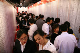 在日前舉行的2008武漢春季房地產(chǎn)交易會上,二手房交易現(xiàn)場吸引了許多購房者。此次交易會共推出2.5萬余套商品房(含二手房)供購房者挑選,其中90平方米以下的中小戶型占總套數(shù)的50%以上。新華社發(fā)(王振武 攝)
